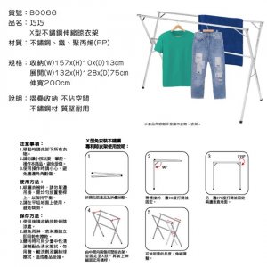 【台南南吉五金】(免運費)B0066 巧巧 X型不銹鋼伸縮曬衣架